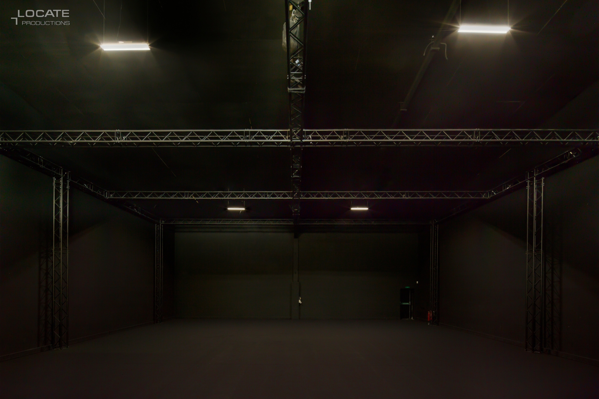 Large blackout and drive-in sound studio, with lighting grid, production office, kitchen and several green rooms.